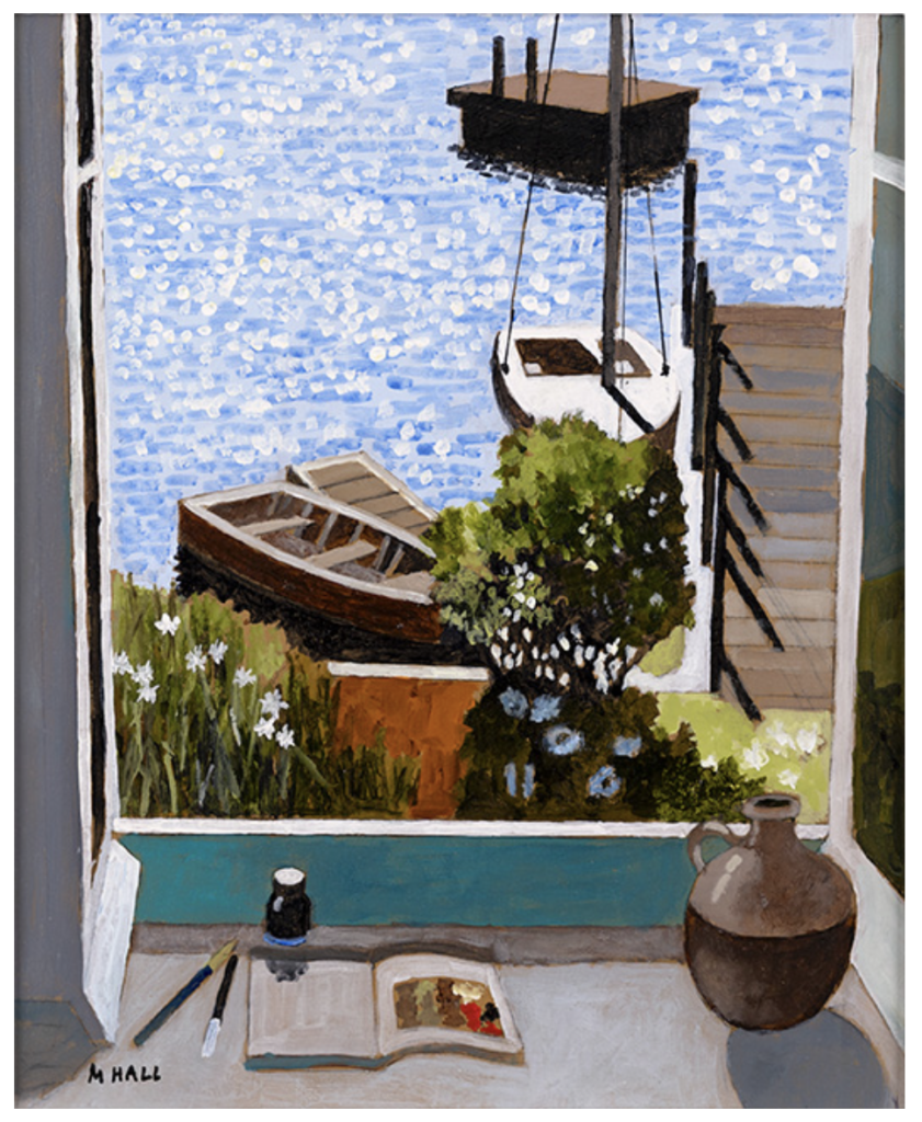 Mike Hall, Looking Down on the Boats, acrílico sobre panel, colleción privada. York Fine Arts.